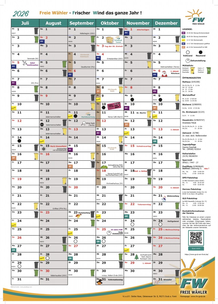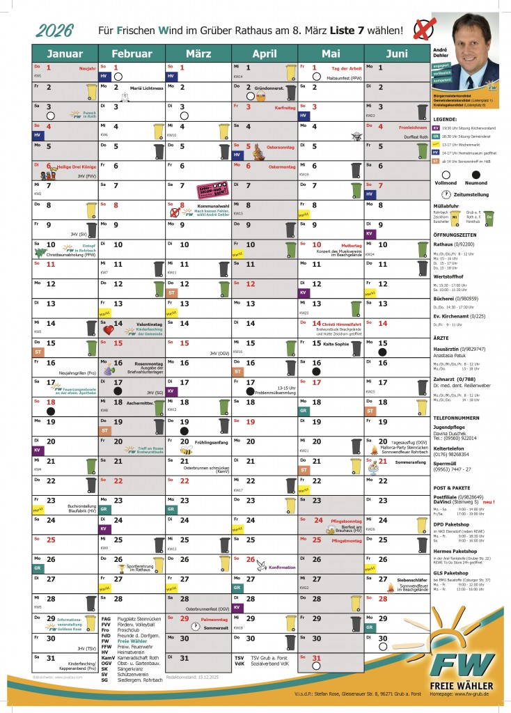 Freien Wähler den beliebten Jahreskalender, der in vielen